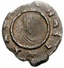 Obverse: Bust of the king wearing a headcloth. Crescent above the
