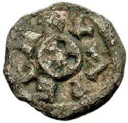 Obverse: Crowned and facing bust of the king. Legend "King Ioel"
