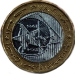 Bi-metallic with Steel center and brass ring 50 Dinar. 1994.