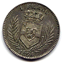 Reverse: Coat of Arms of Leopold II with 1 Franc at the top and