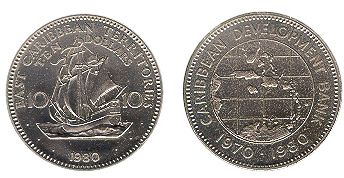 Reverse: Map of East Caribbean States.