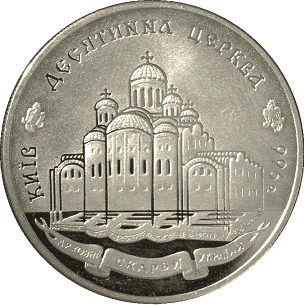 Reverse: Ukranian national symbol at the top, Mother Odyhitriya with a