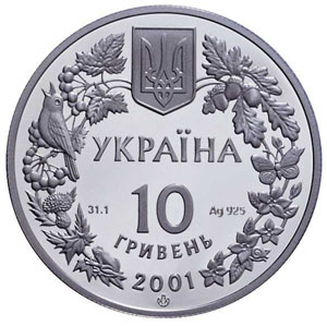 10 Hryvnia. Silver coin. K-130