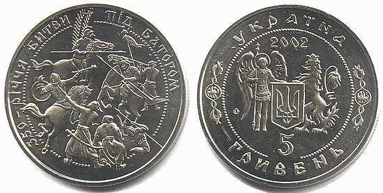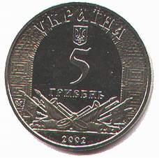 5 Hryvnia. Copper-Nickel-Zinc coin. K-