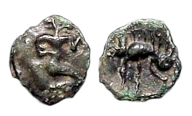 Bronze coin of Bellovaci . 80-50 BCE