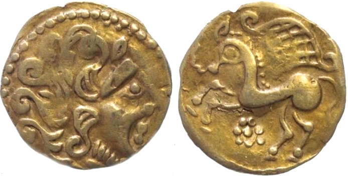 Gold quarter stater of Parisii tribe. c 75 BCE