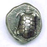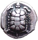 Aegina (Aigina) is an island in Saronic Gulf located off southeastern Greece. Island was settled by Dorians around 900 BCE. Aegina was named after the daughter of Greek river god Asopos. First Greek coins were believed to be made in Aegina around 595 BCE. Island of Siphnos in the Aegean sea was believed to be the source of silver for making Aeginetan coins. Aegina was an independent City State in the 6th century BCE with great maritime trade and tradition. Aegianetans probably chose sea turtle as the symbol on the coins reflecting their maritime history. These Aeginetan chelones also known as turtles had a wide circulation in the mediterranean region till owls of Athens slowly displaced them as a standard coins in the late 5th century BCE. In 4th century BCE, Aegianetans changed design on their coins from Sea turtle to land dwelling Tortois. Some scholars ascribe this change to loss of supremacy of sea trade by the islanders to other greek City States.