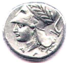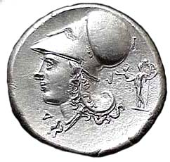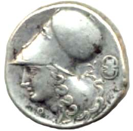 Obverse: Head of Athena wearing Corinthian Helmet.