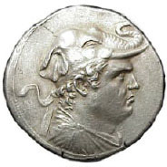 Obverse: Draped bust of Demetrios I wearing elephant scalp headdress.