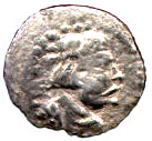 Yueh Chi - Kushan King Heraios' silver Obol. Obverse: King Heraios Reverse: Hercules Holding a club c. 5 -40 CE 11 mm. 0.38 gm. Mitchiner ACW 2843v. Mitchiner ECCA 98 (Bamiyan)