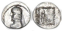 Silver Drachm of Unknown King. 80-70 BCE Obverse: Bust of Unknown King facing left. Reverse: Archer seated with a bow . Weight: ~ 4 grams. Reference: