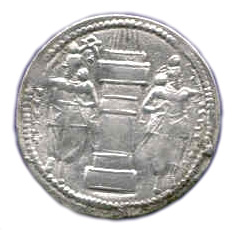Reverse: Zoroastrian fire altar with two attendants standing on each