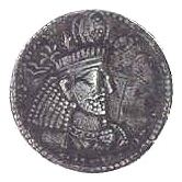 Reverse: Zoroastrian fire altar with two attendants standing on each