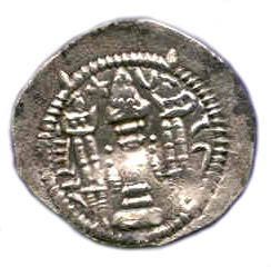 Reverse: Zoroastrian fire altar with two attendants standing on each