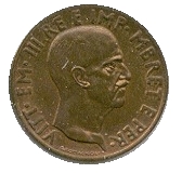 Obverse: Head of the King Vittorio Emmanuel II facing left.