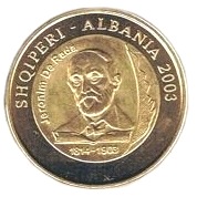 Obverse: A portrait of Jeronim De Rada over an open book. On the right his name and on the left a quill and years of birth and death (1814-1903) below.
