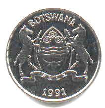 Obverse: National Coat of Arms - East African tribal shield supported by Zebras standing either side.