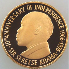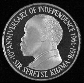 Obverse: Bust of Sir Seretse Khama first president of Botswana.