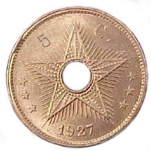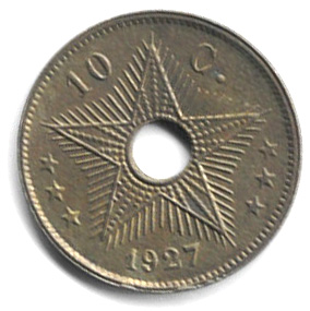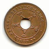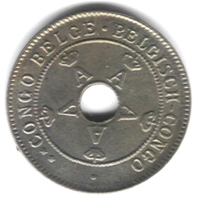 hole in the center and legend Belgian Congo in Flemish and French.