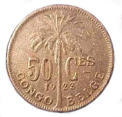 Reverse: Palm tree with legend 50 c, Belgian congo and year in numbers.