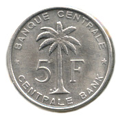 Reverse: Palm tree, 5 F and legend ' Central Bank'.