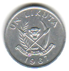 Obverse: Congolese coat of Arms with one Likuta in words above and