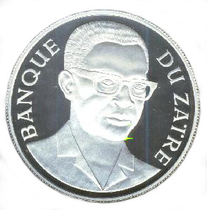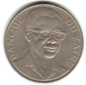 Obverse: Bust of President Mobutu with legend 'Bank of Zaire'.