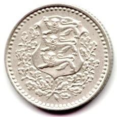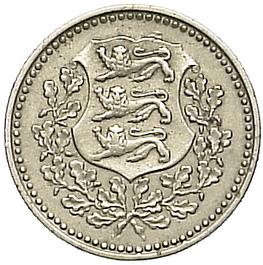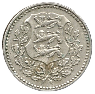 Obverse: hree Lions on a shield inside a wreath separating the year in