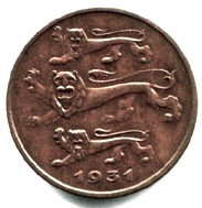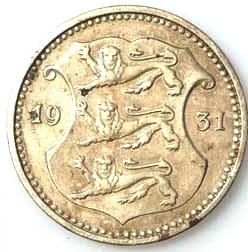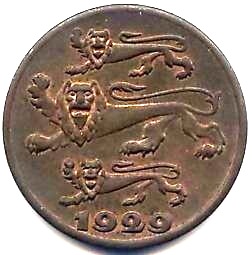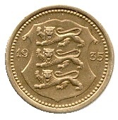Obverse: Three Lions on a shield inside a wreath and the year in