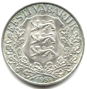 Reverse: Toompea Castle in Tallinn with denomination at the bottom.