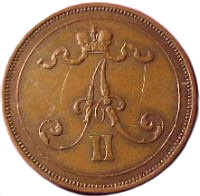 Obverse: Monogram of Czar Alexander II and the crown.
