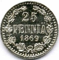 25 Penniä. Silver. 1865-71 CE