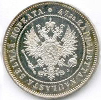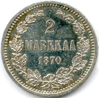 2 Markkaa. Silver. 1865-70 CE