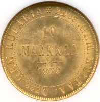 10 Markkaa. Gold. 1879-91 CE