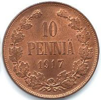 Reverse: 10 Penniä and date in numbers inside a wreath.
