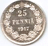 Reverse: 25 Penniä and date in numbers inside a wreath.