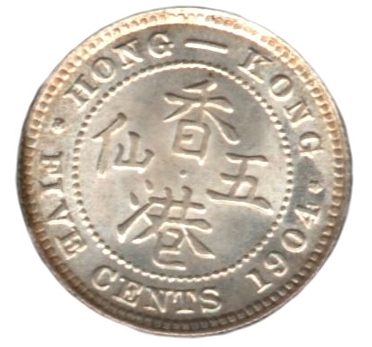 Reverse: Legend Hong Kong Five Cents and year in numbers.