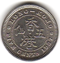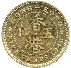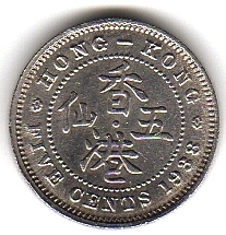 Reverse: Legend Hong Kong Five Cents and year in numbers.