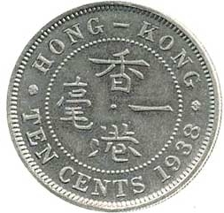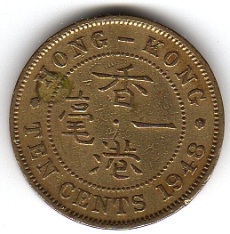 Reverse: Legend Hong Kong Ten Cents and year in numbers.