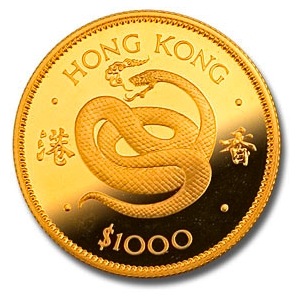 Reverse: Snake (Chinese Zodiac years) and legend Hong Kong 1000 Dollars.