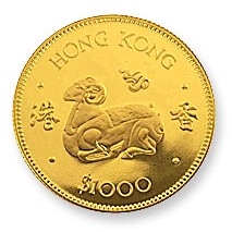 Reverse: Goat (Chinese Zodiac years) and legend Hong Kong 1000 Dollars.