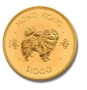 Reverse: Dog (Chinese Zodiac years) and legend Hong Kong 1000 Dollars.