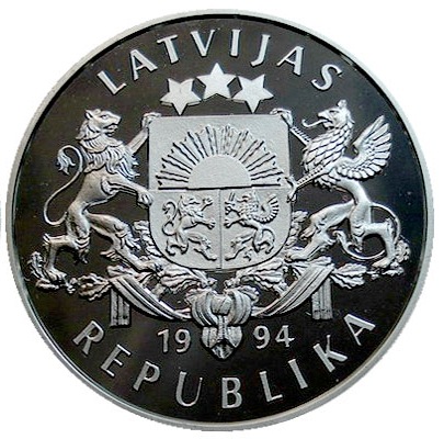 Obverse: Coat of arms of the Republic of Latvia with inscription 1994 & LATVIJAS REPUBLIKA.