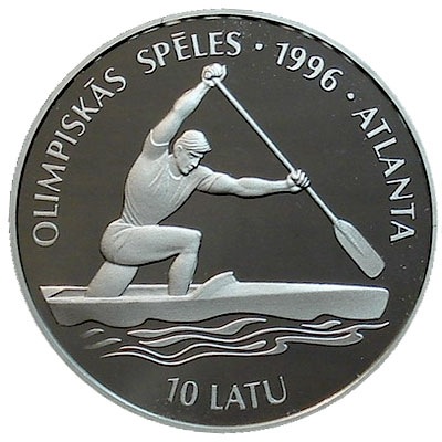 Reverse: A canoeist with the inscription of OLIMPISKAS SPELES · 1996 · ATLANTA and 10 Latu.
