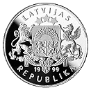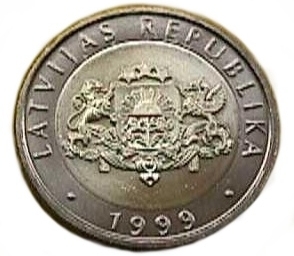 Obverse: Button shaped coin. Inscription - 1999 & 1 LATS, LATVIJAS REPUBLIKA.