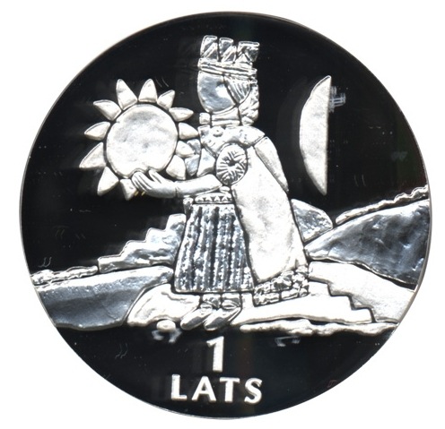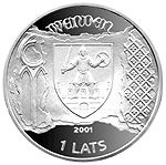 Obverse: The coat of arms of the Republic of Latvia. Inscription - LATVIJAS REPUBLIK, 2001 & 1 LATS.