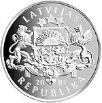 Obverse: The coat of arms of the Republic of Latvia. Inscription - LATVIJAS REPUBLIK & 2001.