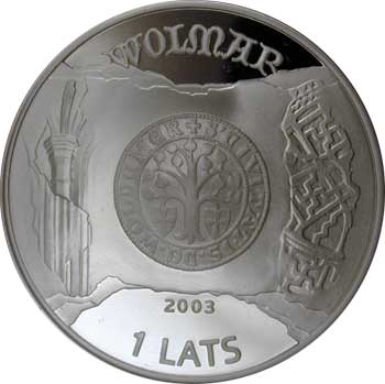 Obverse: Coat of arms of the Republic of Latvia. Inscription - PIECI, 1 LATI & 2003.