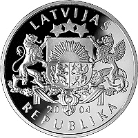 Obverse: Coat of arms of the Republic of Latvia. Inscription - LATVIJAS REPUBLIK & 2004.