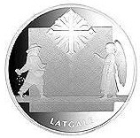 Obverse: Mother Mary with baby jesus against the background of landacape. Inscription - 1 LATS & 2004.